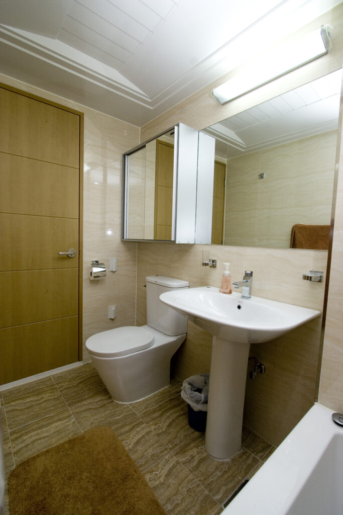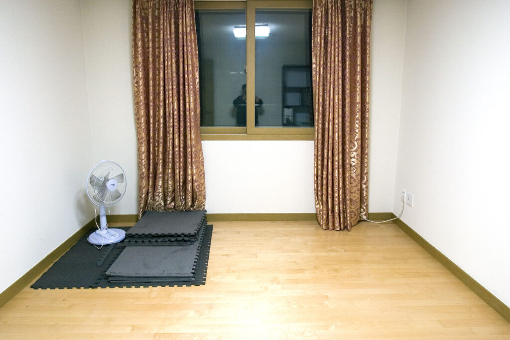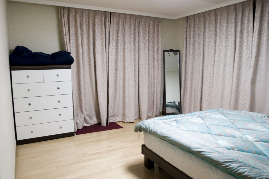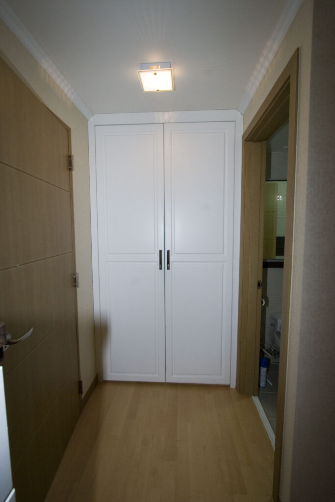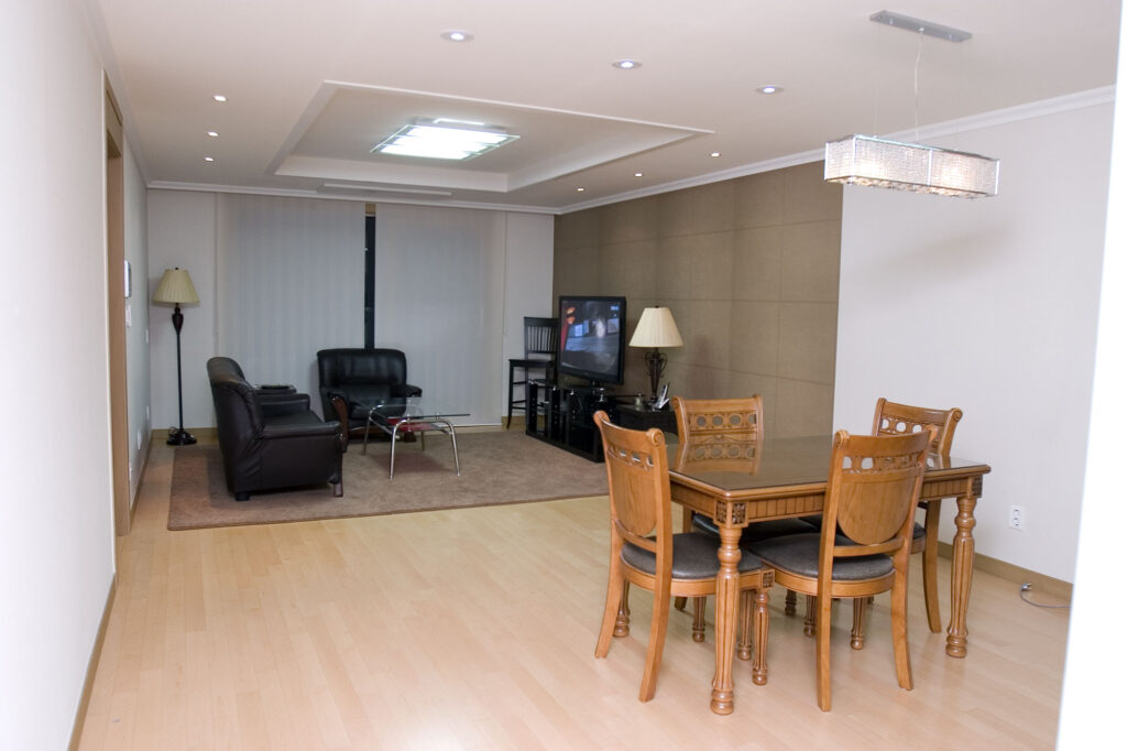 This apartment is approximately 103.7 square meters or 31.4 평 (pyeong) in net living space, not including the veranda. It features three bedrooms and two bathrooms, a spacious living room and dining area, a juliet balcony and a very large balcony measuring almost 14m², and ample natural light.